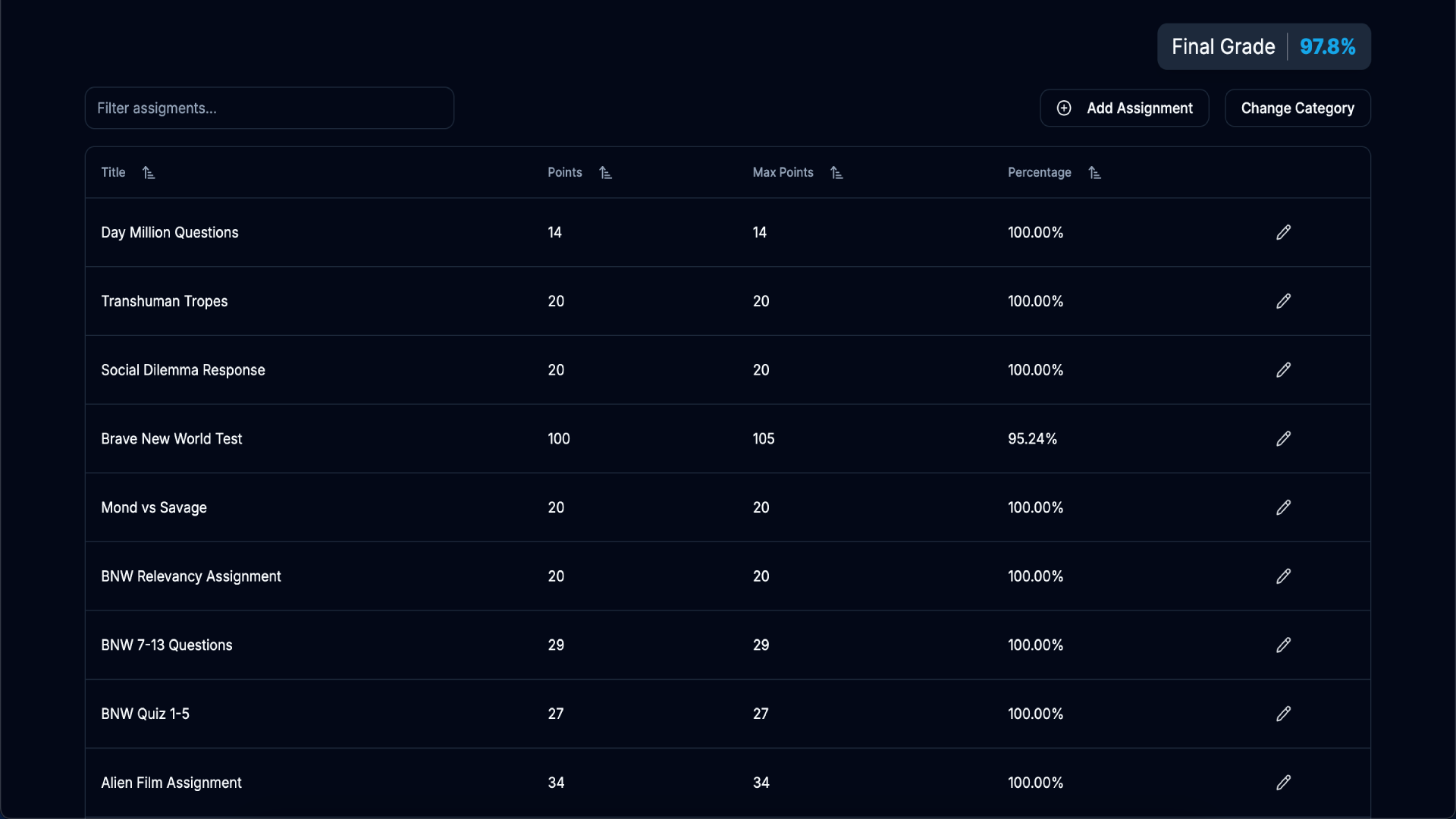 Is your teacher taking too long to put in your grade? Do you want to figure out exactly how to get your dream grade? Don't worry, we'll take care of that. Just input your User-ID and password and we'll fetch the data straight from Skyward, and let you simulate your grades in real time.